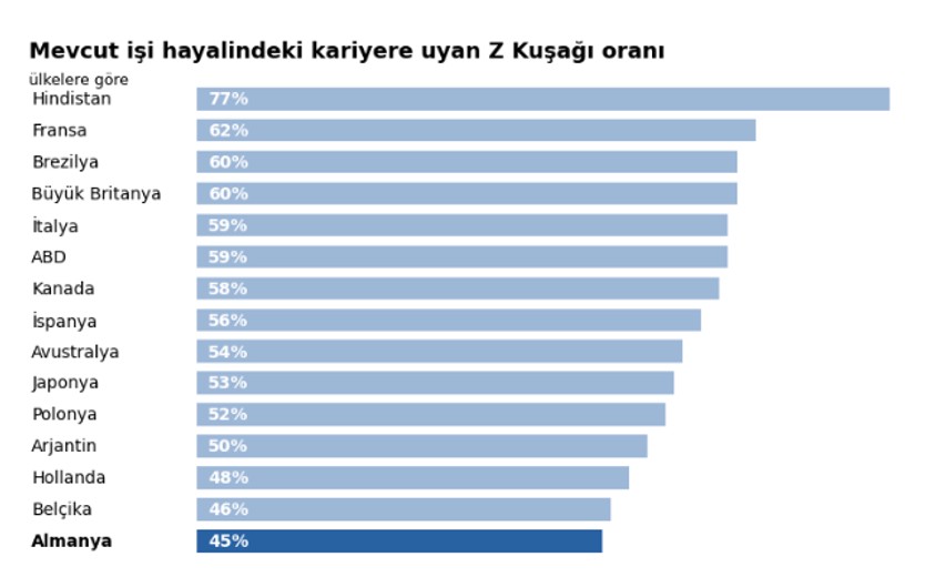Ama veriler, bu düşünceyi en azından yeniden düşünmemizi istiyor. Z kuşağının işte kalma süresi kısalıyor, iş–kariyer uyumu düşüyor ve "kısa süre içinde işten ayrılma niyeti” yükseliyor. Üstelik bu tablo, sadece Almanya’ya özgü değil. Türkiye’de de aynı başlıklar etrafında hararetli tartışmalar dönüyor: "Gençler neden çabuk vazgeçiyor?”, "Neden hızlı yükselmek istiyor?”, "Neden iş-yaşam dengesi diyor?”